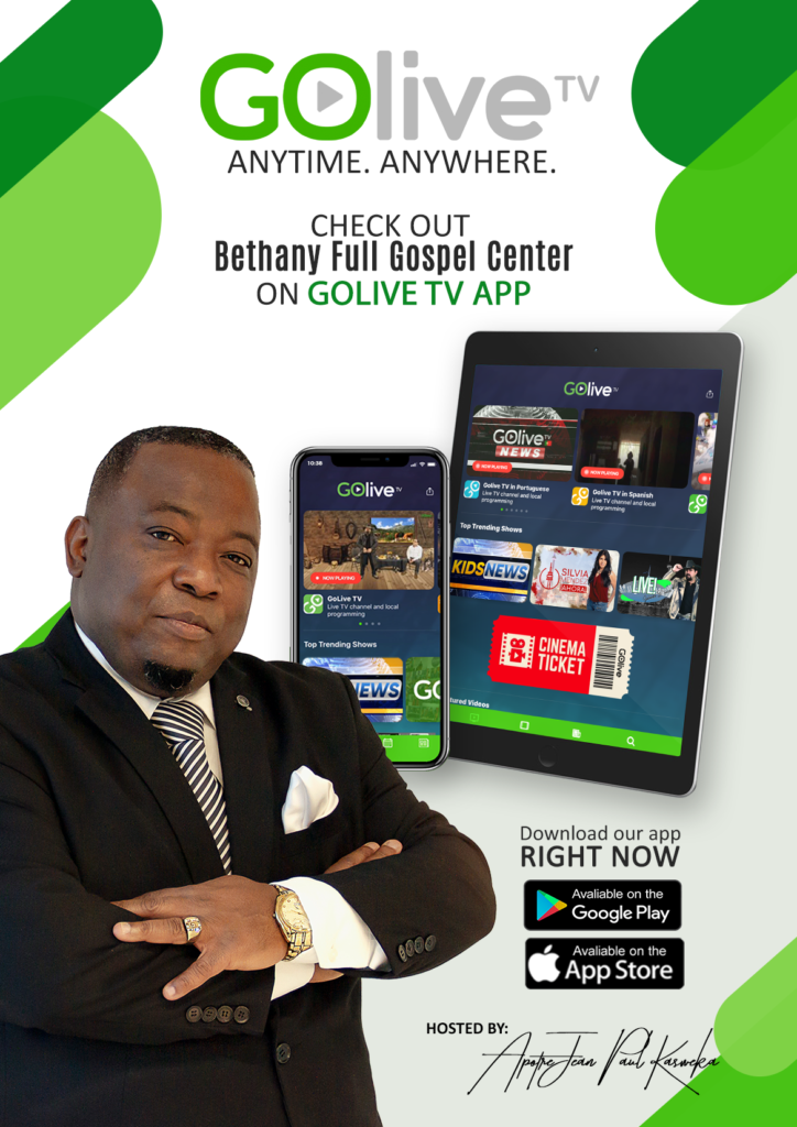 Apostle Jean-Paul Kasweka is a charismatic, dynamic and powerful leader, visionary and entrepreneur who serves as founding and overseer of Bethany Full Gospel Centre, Churches around the world.